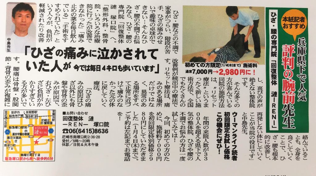 膝の痛みに強い整体院で掲載