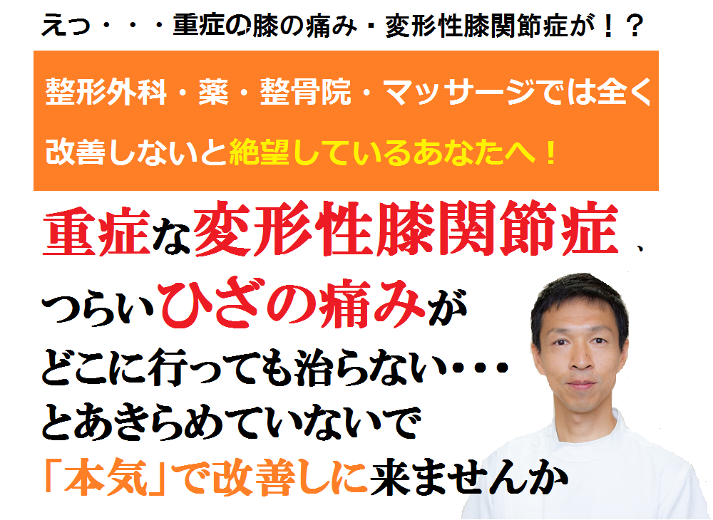 年齢や体重など関係なく重症の膝の痛みの方の改善をしてきた自信があります。
